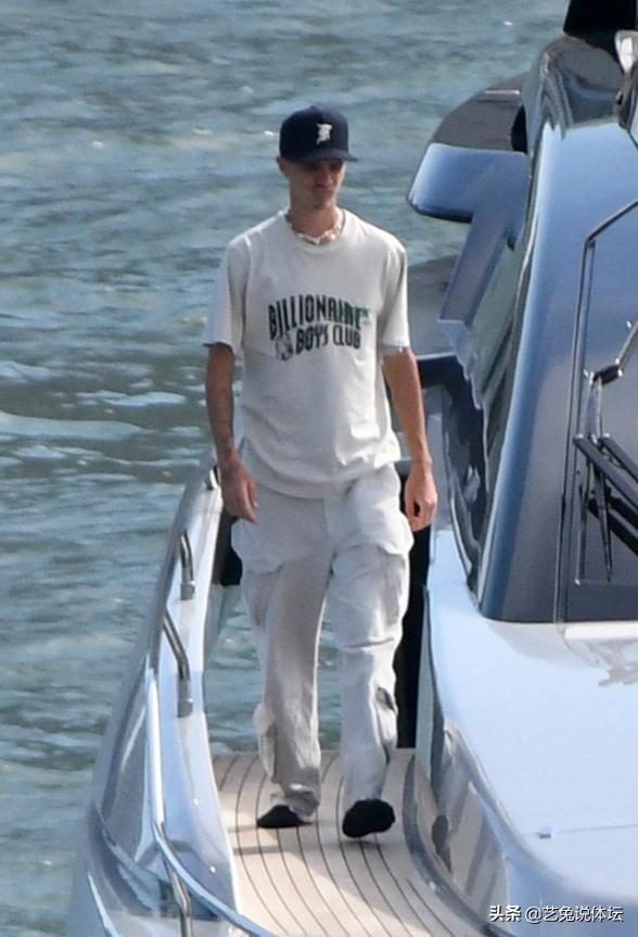 罗密欧身穿一件白色短袖,前面赫然写着两行大字,意思是“亿万富翁男孩俱乐部”!非常醒目。