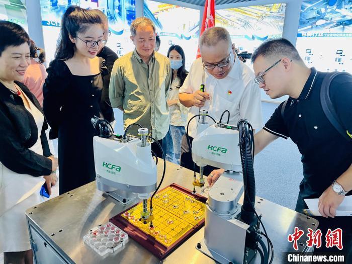 禾川科技展厅,参观者体验相关设备。 张斌 摄