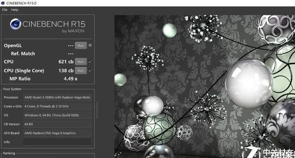 接下来,我们来看一下实际测试结果,以了解这款迷你主机是否能够满足日常使用需求。首先是Cinebench R15测试,它是一个用于评估处理器性能的基准测试工具。在这个测试中,R5-3500U的单核得分为137,多核得分为509。相较于同价位的英特尔赛扬处理器,R5-3500U的性能明显更强。然而,相比于当前的R5处理器,它的性能仍然略显逊色。