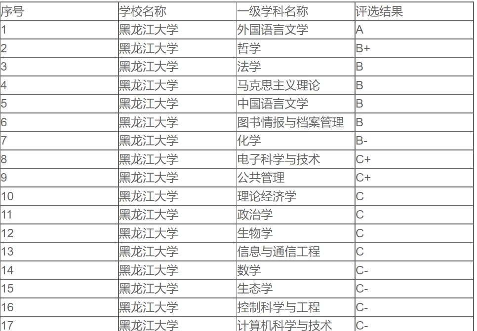 当然除了双一流院校外,黑龙江省还有不少好大学,如黑龙江大学。根据第四轮学科评估显示,黑龙江大学外国语言文学入选A,哲学入选B+,这个成绩在双非院校中是相当不错的。黑龙江大学目前也是下一轮双一流的热门院校,该校的实力可见一斑。