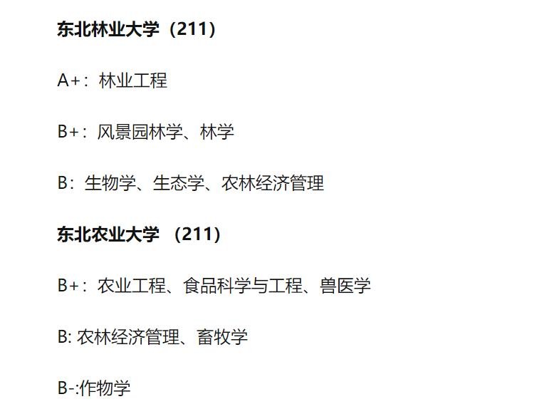 黑龙江虽然气候寒冷,但却是农业大省,农林相关产业发达。东北林业大学和东北农业大学也是本领域的领头羊。东北林业大学林业工程入选A+,东北农业大学表现也不差。