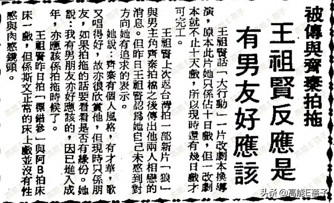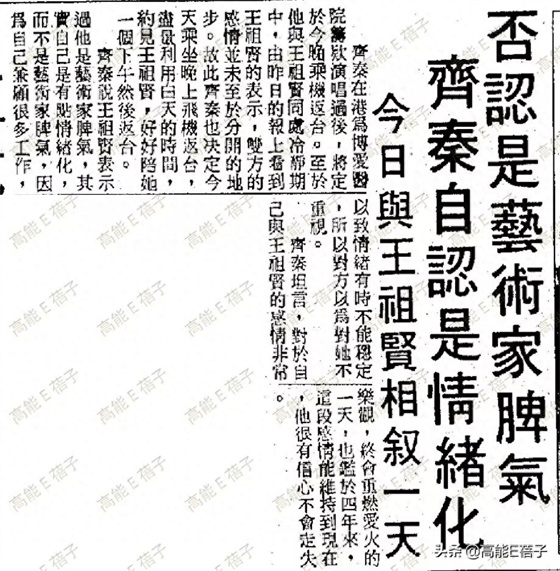 还有“齐秦耍艺术家脾气王祖贤觉难以迁就”,两人经常吵架,齐秦希望女友减少工作,但王祖贤再次强调:不会为爱放弃事业。