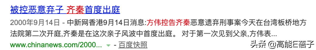 但就在2000年,方美芳以儿子名义把齐秦告上了法庭,控诉他遗弃儿子。一时“齐秦私生子”的事闹得沸沸扬扬,令齐秦王祖贤根本无心结婚。