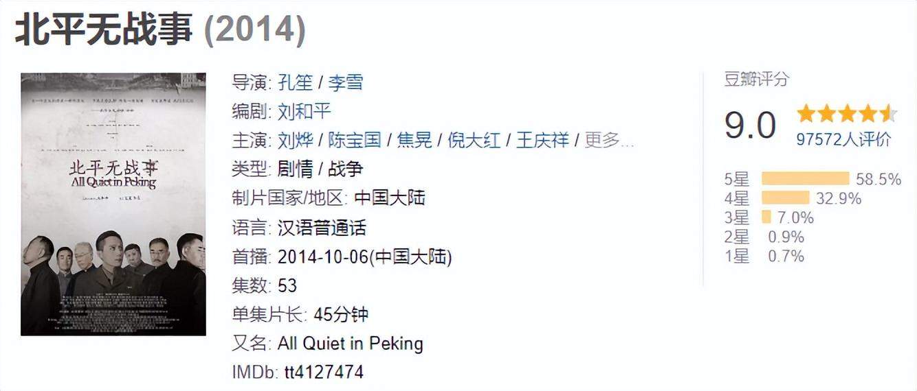 第五名,《北平无战事》,评分9.0,2014年上线