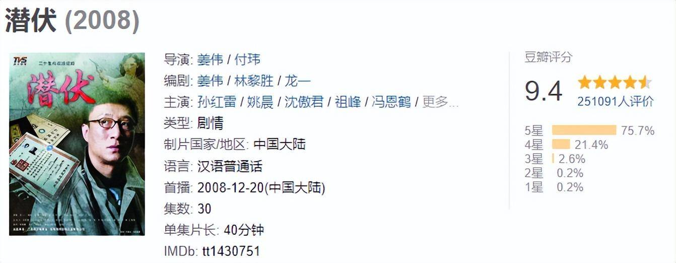 第一名,《潜伏》,评分9.4,2008年上线