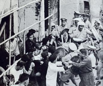 图|一二·三事件的导火线——“凼仔事件”中民众和警方在学校工地旁发生冲突