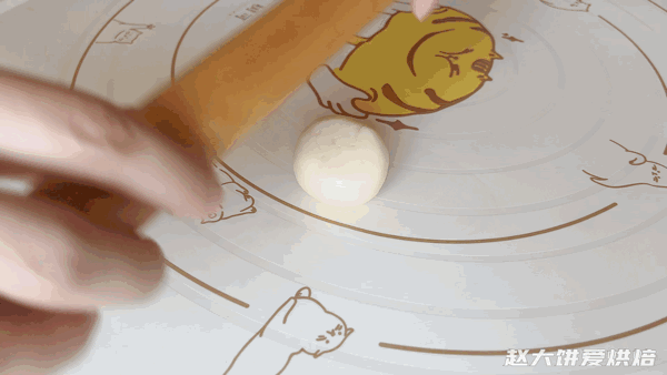13,第二次擀卷,小面团收口朝上,用擀面杖轻轻擀开