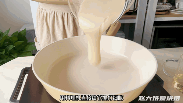 4,做好的白芸豆泥非常细腻,倒入不粘锅,不停翻炒