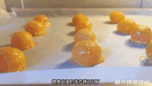 6,咸蛋黄刷上高度酒,放入预热好的烤箱,180度,烘烤6-8分钟,微微出油的状态就可以了