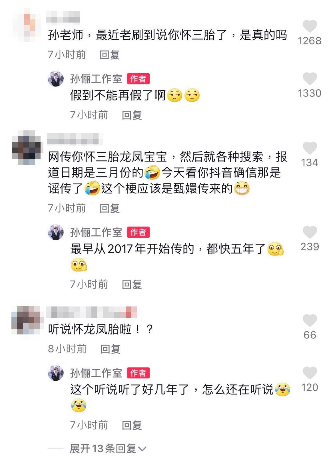 对此,孙俪工作室面对网友大量洗版「第三胎是龙凤胎」的传闻,也以逗趣的口问直接回应谣言,不仅正面澄清消息「假到不能再假」,还自嘲传闻早在2017年就开始谣传「都快5年了」,还有不少民众留言「听说怀龙凤胎啦?」工作室则高EQ吐槽「这个听说听了好几年了,怎么还在听说」,并附上好几个笑哭的表情符号表达无奈。
