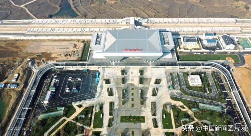 2020年12月22日,航拍合肥市庐江县合安高铁庐江西站。中新社发 周跃东 摄