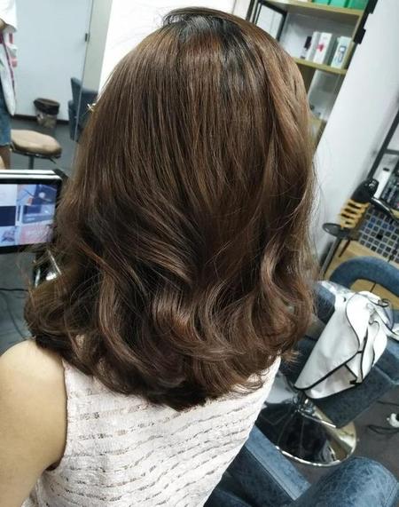 闷青色发色要在两个月以后,就会褪色到类似于这种棕色,也是很好看的,但是没有闷青色更容易提亮肤色,如果你的肤色比较黄,可以染一款深闷青色,是十分显白的。