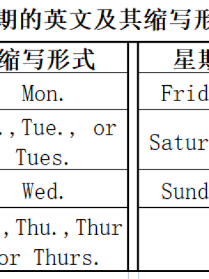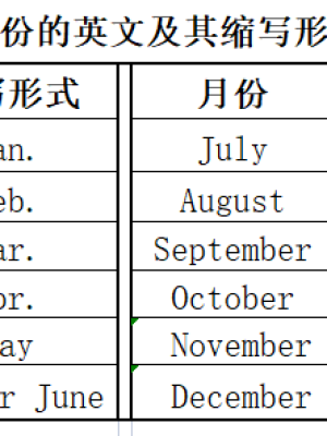 月份的英文表达有一月January,二月February,三月March,四月April,五月May,六月June,七月July,八月August,九月September,十月October,十一月November,十二月December。星期一到的英文表达有星期一Monday,星期二Tuesday,星期三Wednesday,星期四Thursday,星期五Friday,星期六Saturday,星期日Sunday。月份和星期都是专有名词,每个单词的首写字母必须配图大写,一到十二月英语。月份和星期的每一个单词都有它的缩写形式,具体缩写形式见下表配图: