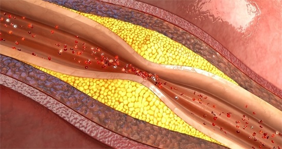 健康的动脉没有粥样硬化斑块,但是在高血压、高血脂、高血糖、吸烟等因素的影响下,动脉内膜会被损伤,血液中的低密度脂蛋白胆固醇(LDL-C)就会通过损伤处进入动脉内膜中形成斑块。