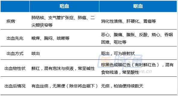 此外,咯血还需与呕血(上消化道出血) 相鉴别。