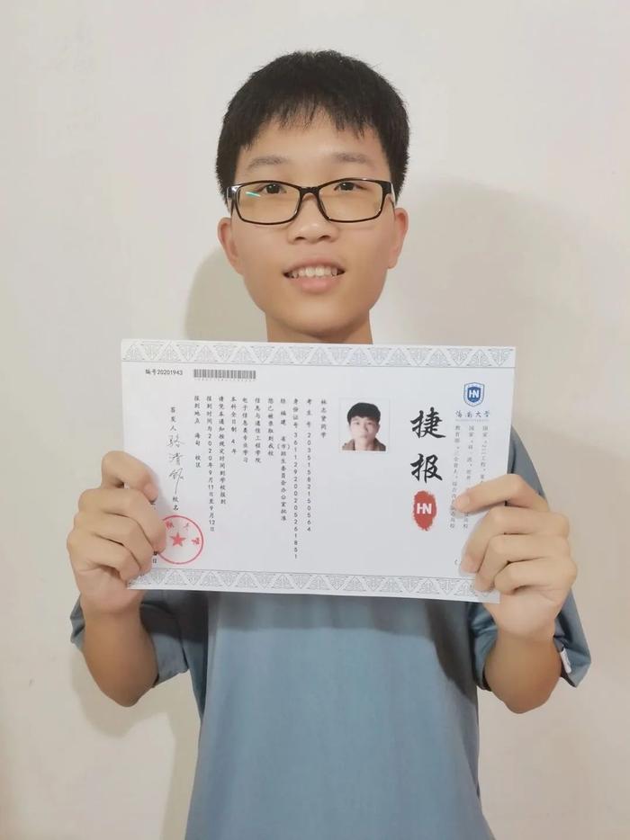 ▲倪天豪同学录取北京师范大学
