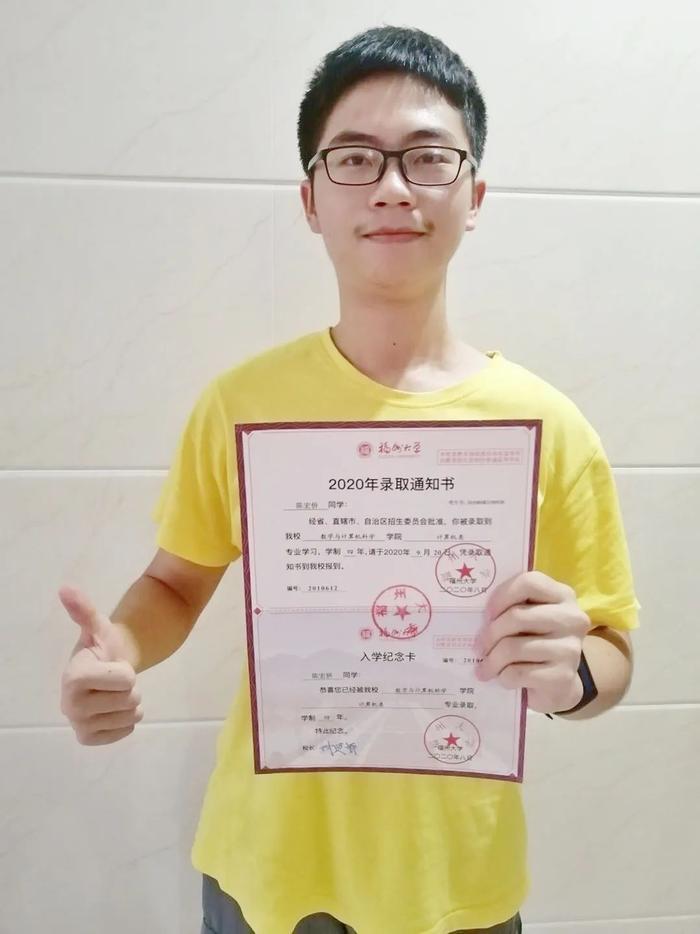 陈宏侨同学录取福州大学
