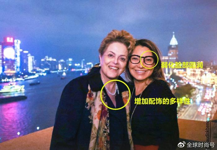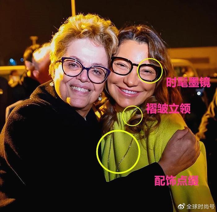 颜值不够,配饰来凑,巴西第一夫人不算是那种绝对佳人,但是很擅长利用配饰点缀自己,通过高领设计,时髦的镜框,黄金项链来修饰,大方又柔美。