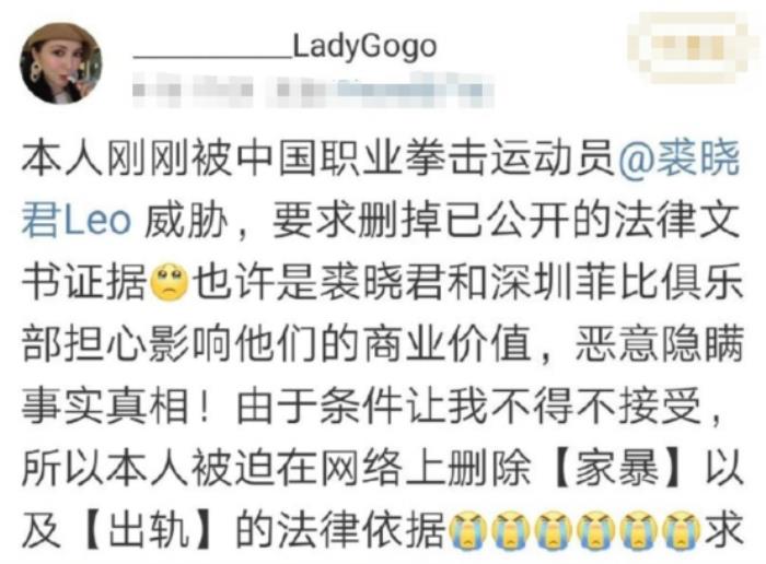 就在近两天,有知情人士在网络上爆料:中国知名富二代拳王裘晓君在妻子怀孕期间不仅出轨,还家暴打了原配。
