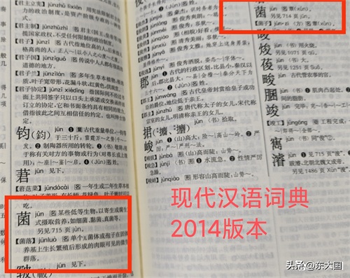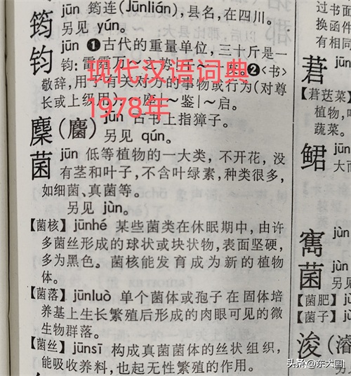 第二种可能,那就是翻看辞典出错----大部分电视台的配音间都有有一本黑乎乎油乎乎烂乎乎的词典----这是专业与靠谱的象征,如果没有,你摆出多少理由,我也会表示鄙视,就像看到律师不去翻开纸质的法律文本一样,你别指望他是一个靠谱的律师。辞典,是广播电视配音撰稿最标准最高效最常用的工具。别跟我说各种电子版辞典早已上线而且方便快捷云云,查询时间是最大的成本。不过这时,却是大错特错,因为辞典一查,没有细想,却立即被“菌”四声的字条误导---菌四声,蕈读四声,蘑菇,食用菌嘛,当然读四声嘛,其实只要转念一想,当菌字,单独出现,而且出现在口语中,才读四声。