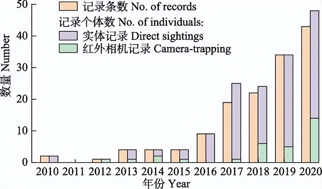 中国境内2010–2020年中华穿山甲记录条数、个体数与记录类型