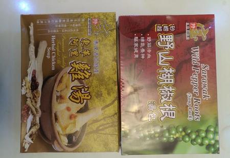 在新加坡及马来亚〖肉骨茶〗是当地驰名商标产品,响誉东南亚。肉骨茶主要以川芎、枸杞子、玉竹、当归、甘草、桂皮、八角茴香、古月粉等材料配伍而成,经打成粉入包作湯料用作煲汤,加入猪骨鸡肉熬汤几小时调味便可食之。肉骨茶是上佳的卸寒汤料。在这些肉骨茶配料中还加入一种名贵特产‘’东革阿里‘’。(图)