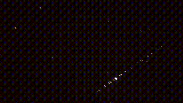 图5:天文嗜佳者拍摄到排成一列的星链卫星顺序闪烁,根源https://www.youtube.com/watch?v=cycLZQtM8HU