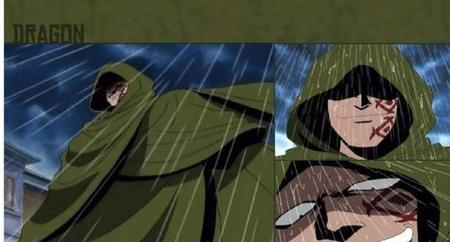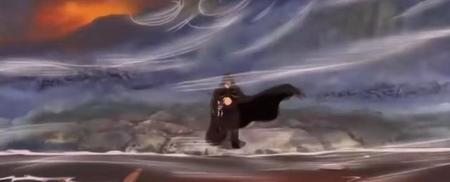 这俩张图是龙救下萨博时候的,给出的特写。首先萨博落水的时候是没有大风的,但是龙出现的一瞬间身边就伴随着大风,而且随后有着类似于瞬间移动的镜头直接来到了船上,落地的瞬间脚下生风!