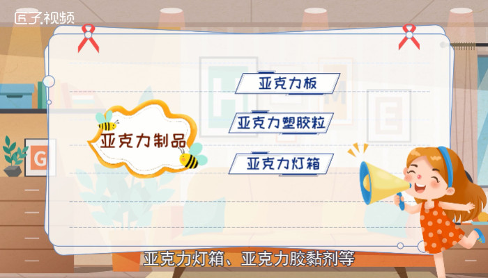 亚克力制品有亚克力板、亚克力塑胶粒、亚克力灯箱、亚克力胶黏剂等。