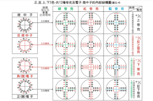 12 种轻子:包括电子量 (e)、渺子 (μ)、陶子 (τ)、、中微子正电νe、中微子νμ、中微子ντ,及对应的 6 种反粒子,包括 3 种反中微子。