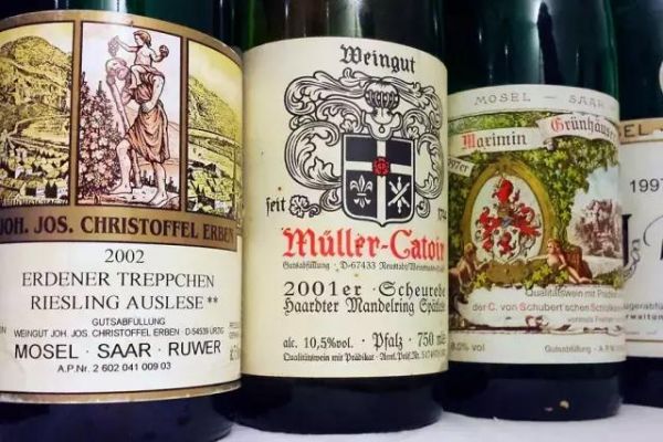逐粒枯萄精选酒 Trockenbeerenauslese(简称 TBA)是德国和奥地利葡萄酒的最高级别,对酿酒葡萄的糖分要求最高(德国最低为 150-154°Oe,奥地利最低为 30 度 KMW),一般只有极好的年份才有出产,因而产量极为稀少。TBA 比一般甜酒香气浓郁度要高几个等级,糖度也更高,常散发着桂花、洋槐和果香,同时带有丰厚的坚果、果脯、蜂蜜和香草等香气,陈年潜力巨大,可保存上百年。