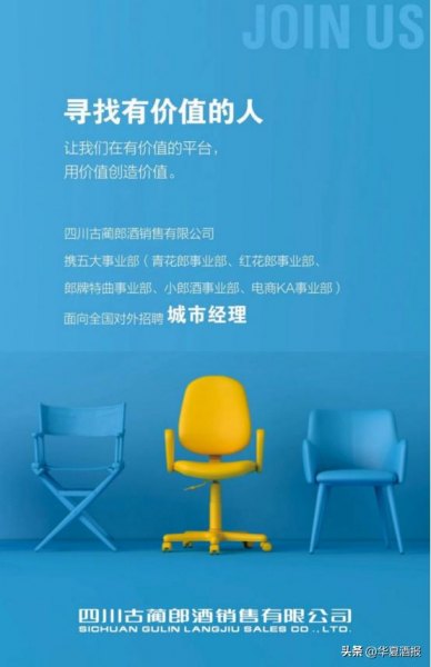 1月17日,郎酒股份官方发布招聘公告,为郎酒销售公司五大事业部(青花郎事业部、红花郎事业部、郎牌特曲事业部、小郎酒事业部、电商KA事业部)招聘销售人才。