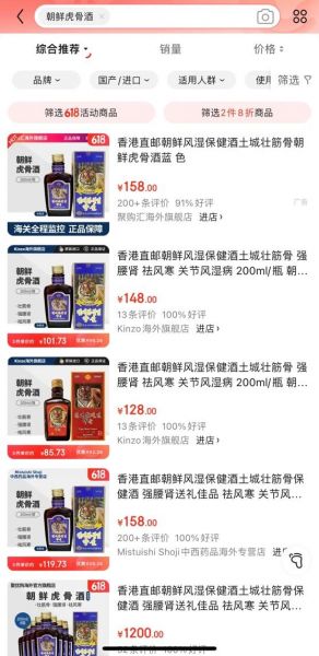 澎湃新闻记者注意到,京东多家店铺销售的是同一款虎骨酒,生产厂家为朝鲜平壤医科大/土城制药厂,主原料包含虎骨、木瓜、川穹、牛膝、当归、天麻、五加皮、红花。这些店铺的销量和评价在十几条到二百多条不等。