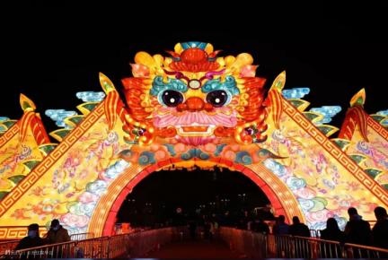 白天园内举行各种巡游等丰富的表演活动;晚上大型灯组节日氛围十足,打铁花表演浓烈绚烂,舞火龙表演火爆喜庆。