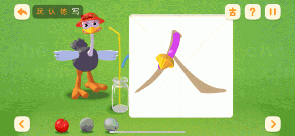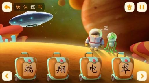 整个识字设计都是通过玩、认、练、写四个模块。
