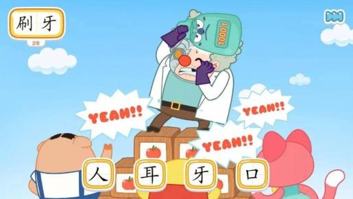 它用的是识字APP惯用的闯关模式。先学习,再玩游戏。