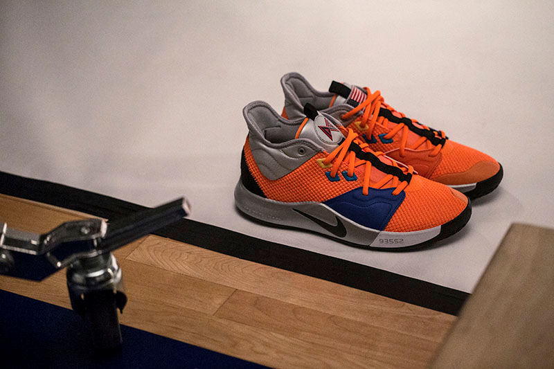 不过,考虑到乔治此前效力的雷霆队就有一套类似宇航员配色的球衣,这就让这双NASA配色的球鞋有了用武之地。此外,乔治3在鞋跟部分还有一句“如果月球上都有人类的脚印那天空怎能算极限”,这也契合保罗·乔治在篮球场上与人类一样的探索精神。