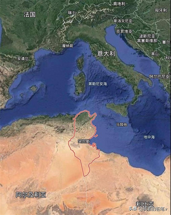 突尼斯位于非洲大陆最北端,东南与利比亚为邻,西与阿尔及利亚接壤,北部和东部面临地中海,隔着突尼斯海峡与意大利的西西里岛相望,从突尼斯最靠近欧洲的提卜角算起到西西里岛的最短距离大约是148公里。国土面积有16万平方公里,海岸线长1300千米,突尼斯海峡是直布罗陀海峡通往苏伊士的必经之路,具有控制地中海的重要战略地位。