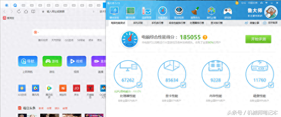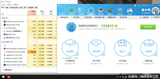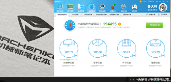备注:在运行鲁大师性能跑分的时候,如果笔记本电脑后台有其它软件程序运行那么可能就会影响到电脑跑分的,因为不管软件程序多大都会占用一点的计算机资源从而影响到跑分数据。