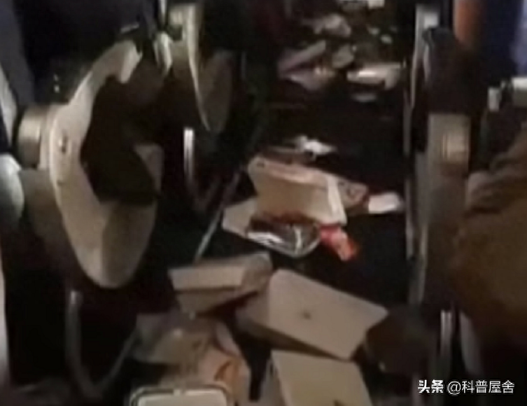 一时间餐车倾倒,饮料和饭菜洒落一地,派餐的空姐被餐车砸倒在地。另一位空姐则因为飞机的突然失重,被甩了出去,幸好慌忙之际她抓住了椅背,才没被甩到机舱内壁上。