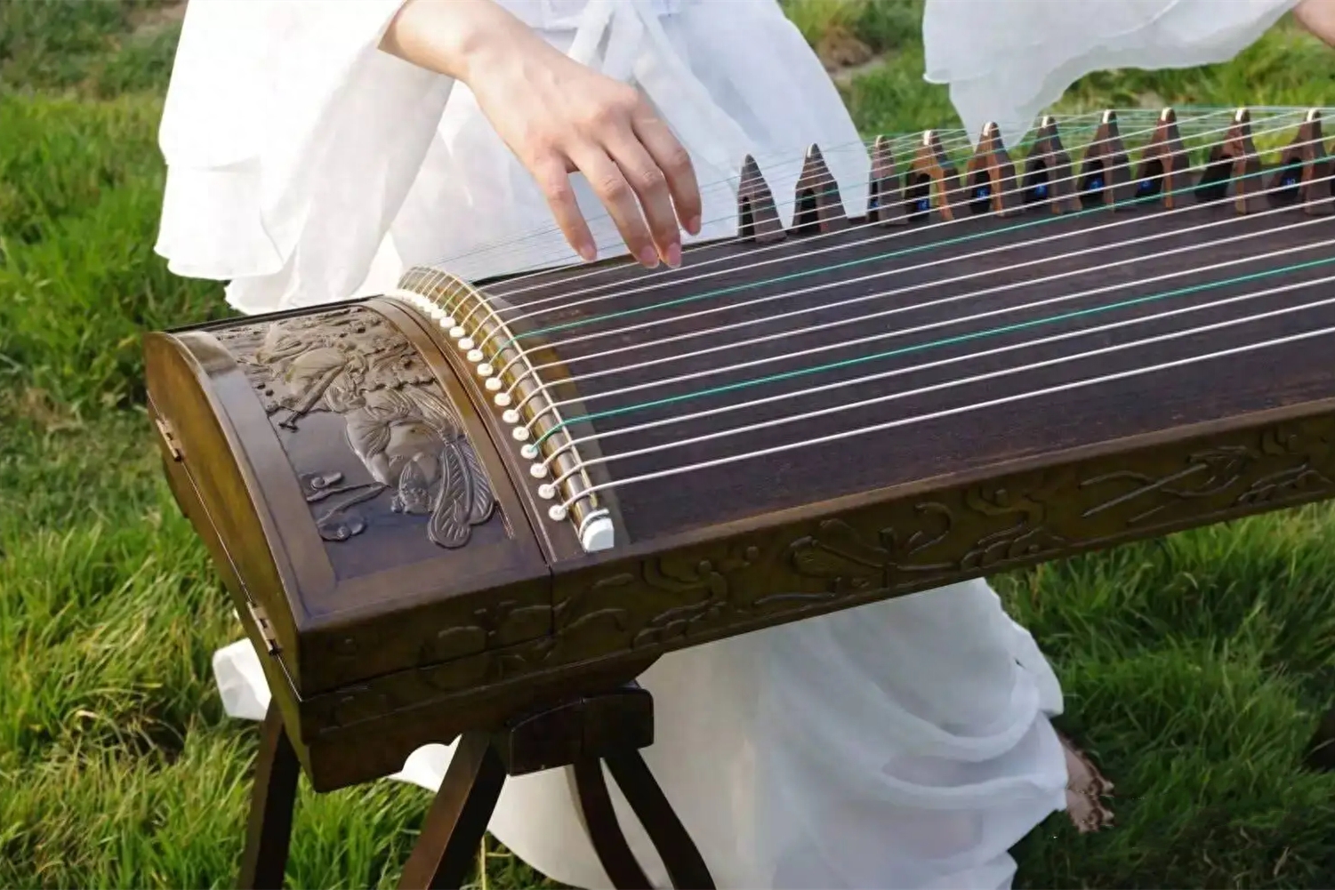 魏晋南北朝时期,谢仁祖不用谱子,就可以在桓温面前边弹筝边唱;晋代的桓伊,可以用筝和上乐奴的笛曲。这两位都不是乐师,只是朝中官吏,没有接受过专业的音乐训练,但都能够具有比较高的演奏水平。即便弦子有十几根,练上个一百天,也能把筝演奏得非常动听,这便是万日筝的由来。