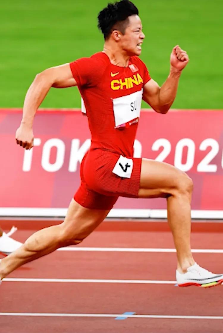 2018年,在教练亨廷顿的指导下,他改变了前后起跑器的距离。预备时腿膝关节的角度起跑。第一二步不长,前期不累积不长,简直是分子级别的调整。从二十五到三十岁,苏炳添渐渐从一个瘦小伙变成了。肌肉壮汉因为优秀的短跑运动员不仅靠小腿发力,还要靠臀肌力量。那练手臂肌肉干嘛,摆臂跑步要摆臂。2018年,他在改变摆臂动作,2019年他在改变呼吸模式,直至今年上半年。他还在试着改变,不服苏神,为什么神,因为他不是用腿在跑步,他用的是脑子。