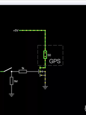但现在有一个新的问题需要解决:这些单元中的大多数缺乏一个启用/禁用引脚,而GPS单元通常消耗30-100毫安的电力。我们可以用一个N-MOSFET(或类似的)黑掉一个禁用开关。上面的原理图显示了基本的想法技术。我们也可以在falstad[1]中进行尝试。