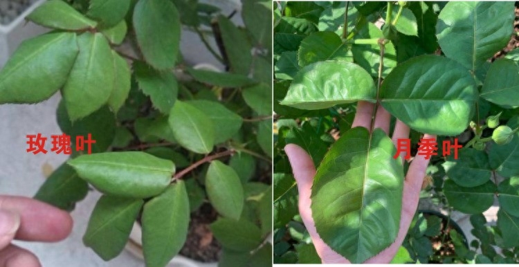 玫瑰的叶子细长,叶片颜色淡,表面无毛, 无光泽, 叶脉凹陷而皱缩。