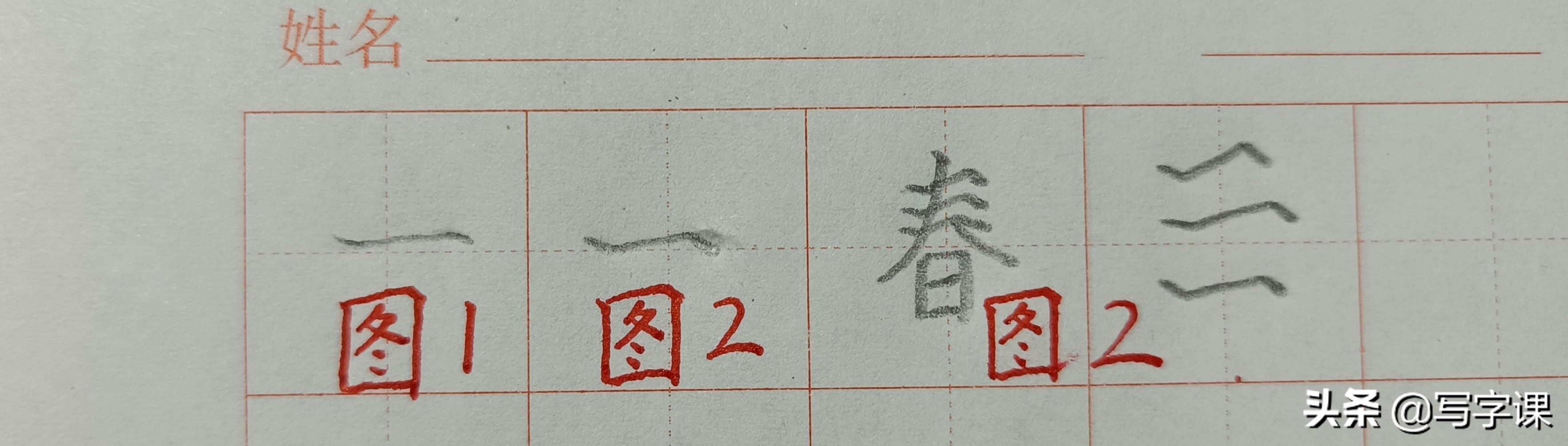 记得小时候常听老师讲,字要写的横平竖直,这里所说的横平并非水平,在楷体字中它指书写要平稳,然现实中很多小学生容易把横笔写成波浪形,寻其根源,皆因起、收笔处顿笔过大,甚至还有很多书法老师教孩子写规范字,无论何种笔画都特意强调要顿笔大些,字出锋,这样好看,或许老师是一片好意,出锋确实好看,却不知很多孩子写字本身就容易放大笔画和字形,又因对控笔能力、汉字笔画的书写熟练度有所欠缺,导致进入误区,老师写出来是这样的(见图1),而学生写出来却是这样的(如图2)。久而久之已经很难改掉这种习惯,直接导致整个字看起来不美观,于是很多家长产生了疑问,那孩子练字到底该不该顿笔?到底该如何写好横笔?