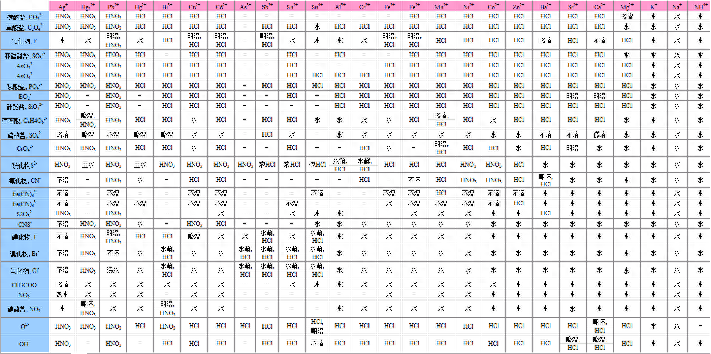 高中化学最全溶解性表,绝对全!一表在手,高考无忧,你值得收藏