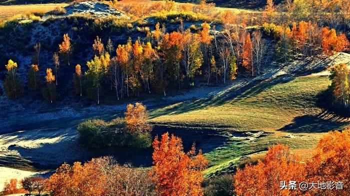 敖包吐适合早起拍日出或者晚上拍日落,早上去北沟看日出,晚上到敖包吐拍日落安排较合理。敖包吐的地势比较高,秋天的时候拍秋景可以看到一大片金黄的白桦林,找准时机,好的光影效果能创造出大片。不过这边拍摄的人会比较多,机位可能比较难找。不一定非要抢占最佳机位,不然可能都拍不到好片子,找出特别的角度也很棒!