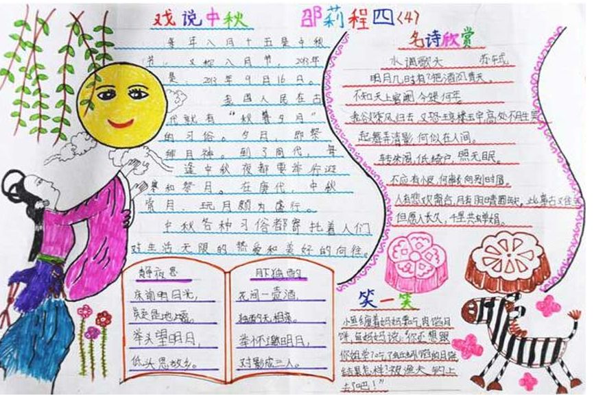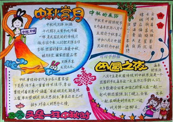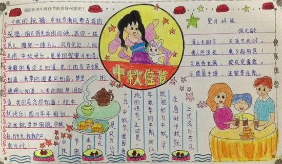 中秋节啊!你是一个家人团聚的节日;中秋节啊!你是一个快乐的源泉;中秋节啊!你是我最喜爱的一个传统佳节!