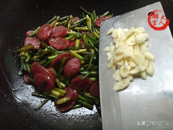 2、为什么不是先炒腊肠而是先炒蒜苔?(记住第二点)