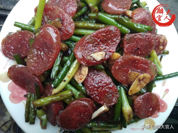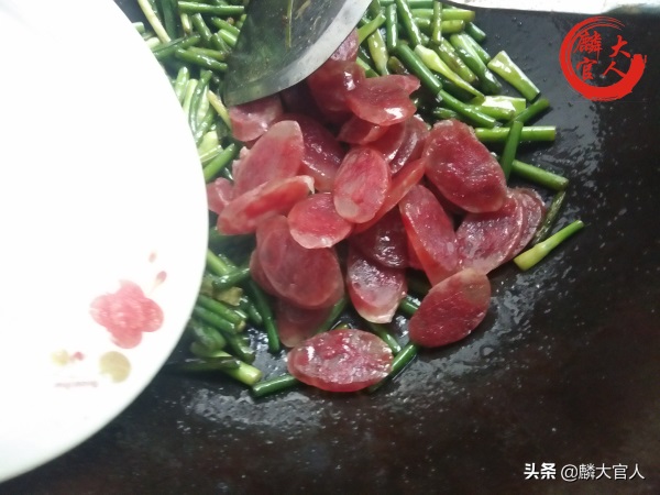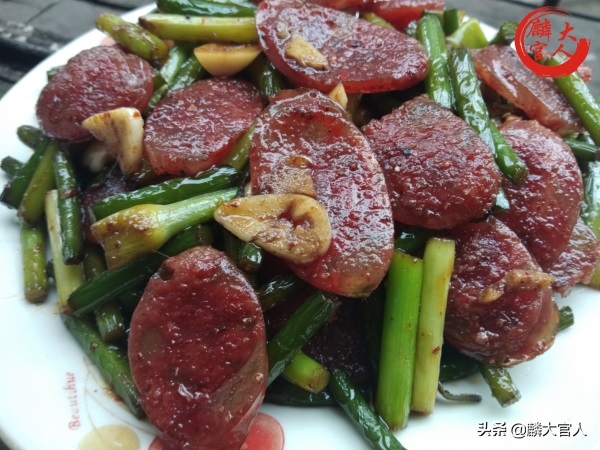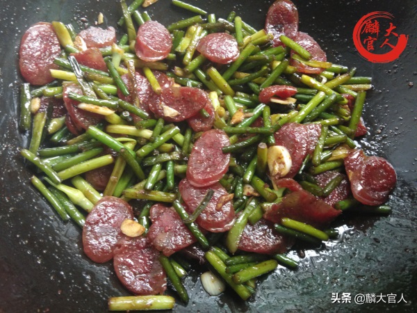 答:……….因为腊肠本身里面带有咸味,而且腊肠蒸过已经熟透,如果先炒腊肠,蒜苔难以调味,而且蒜苔没有炒熟腊肠反而容易先炒干水分,吃着发干不好吃,所以推荐先炒蒜苔再炒腊肠,而且炒完蒜苔时就要调入食盐,这样才能保证蒜苔也能提前完整入味。